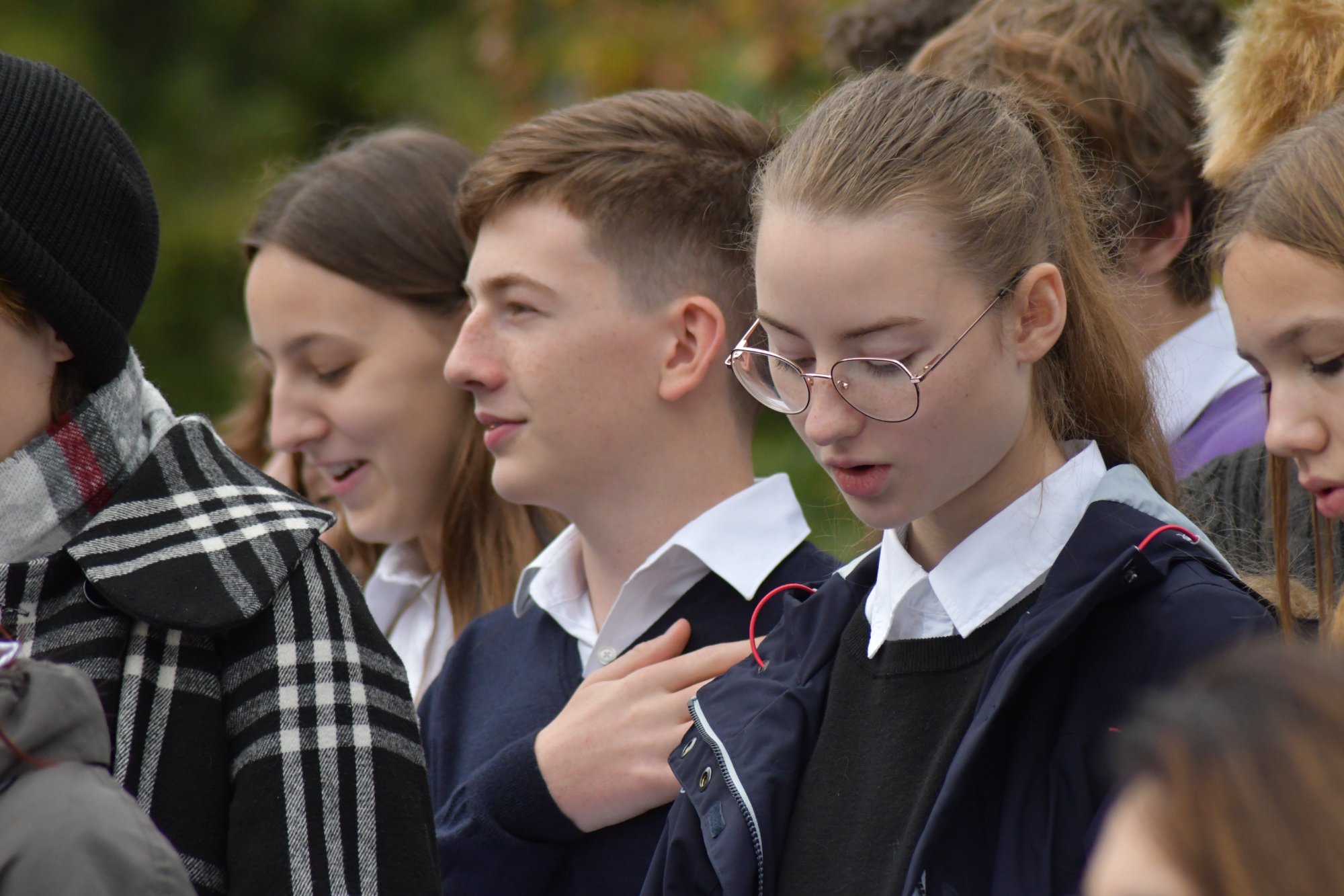 Następnie Dyrektor przekazał mikrofon młodzieży. Uczennica przedstawiła krótką informację o Irenie Bobowskiej, kolejna wyrecytowała znany wiersz Bohaterki. Grupa uczniów, pod kierunkiem pana Ryszarda Nowaka, zaśpiewała "Opowieść o Neni". W tym czasie został oddany hołd Irenie Bobowskiej, poprzez zapalenie zniczy oraz wspólne odśpiewanie Hymnu Narodowego. [AWN]