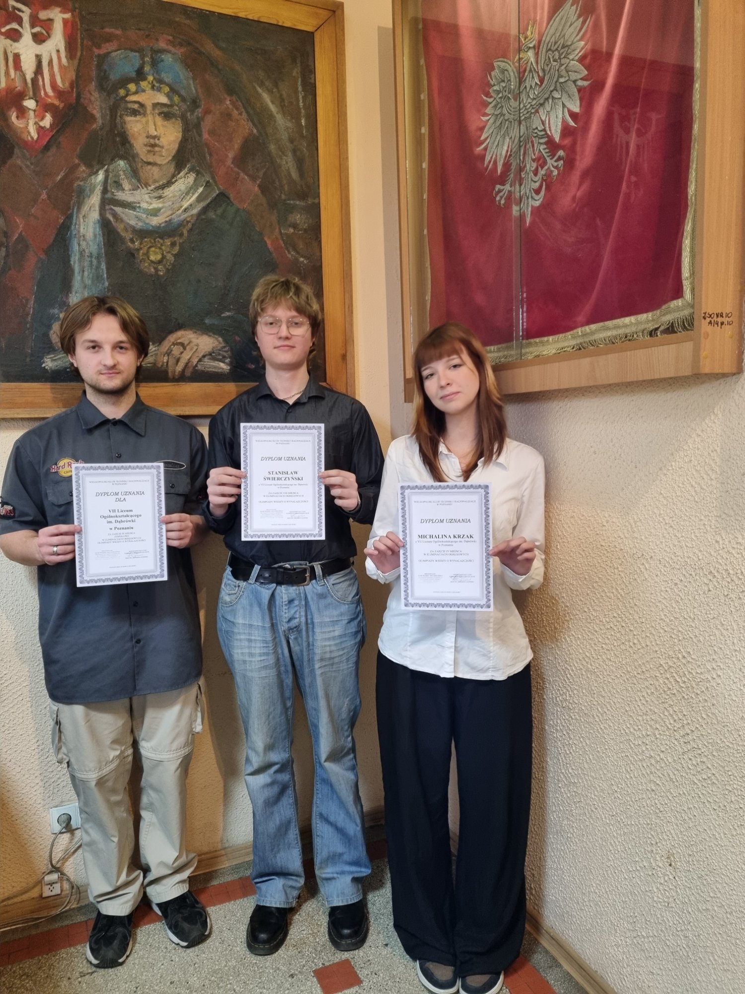 Drużyna klasy 4d w składzie: Michalina Krzak, Maksym Drążkowiak oraz Stanisław Świerczyński zdobyła zespołowo trzecie miejsce w Eliminacjach Okręgowych Olimpiady Wiedzy O Wynalazczości organizowanej przez Wielkopolski Klub Techniki I Racjonalizacji. Indywidualnie Michalina zdobyła czwarte miejsce, a Stanisław ósme. Gratulujemy. [TLK]