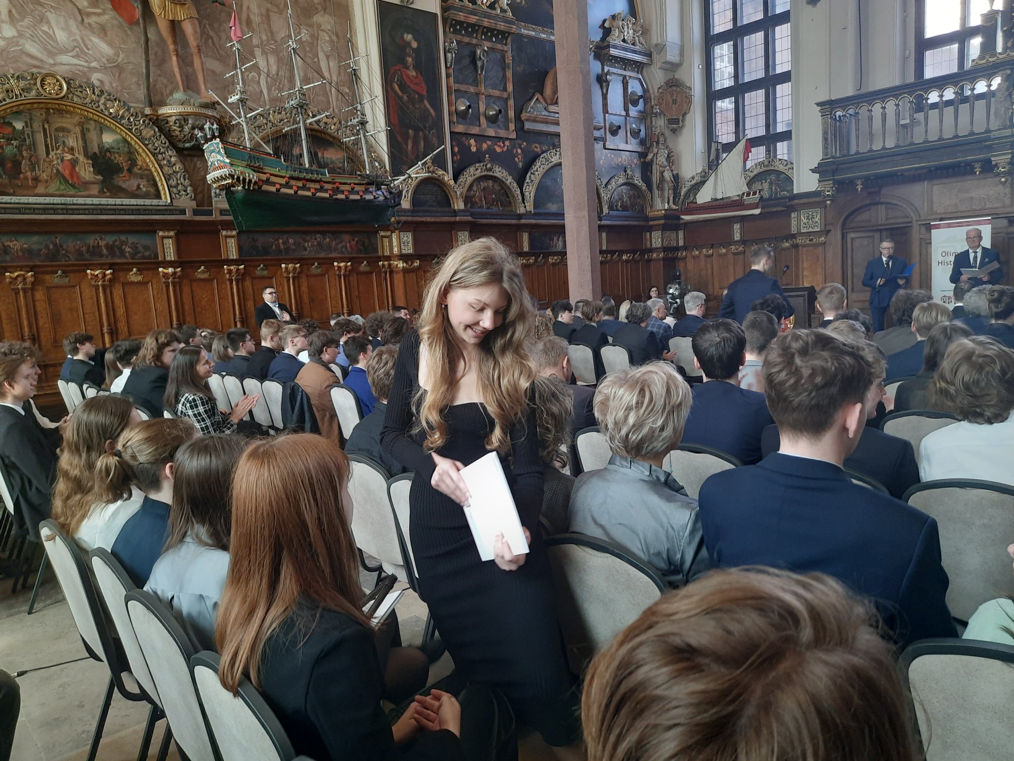 Ogłoszenie wyników jubileuszowej edycji Olimpiady Historycznej nastąpiło w sali gotyckiej gdańskiego Dworu Artusa.