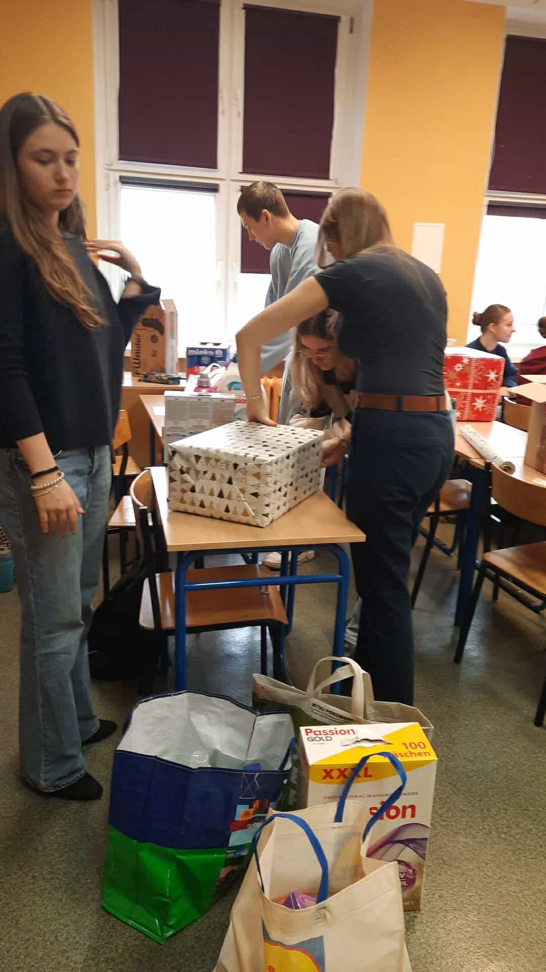 Klasa 2e przygotowała świąteczne paczki dla jednej wybranej rodziny z Ukrainy. Wymagało to dużego zaangażowania uczniów i rodziców, ale udało się spełnić niemal wszystkie marzenia… Radość więc na Boże Narodzenie będzie wielka! [AWN]