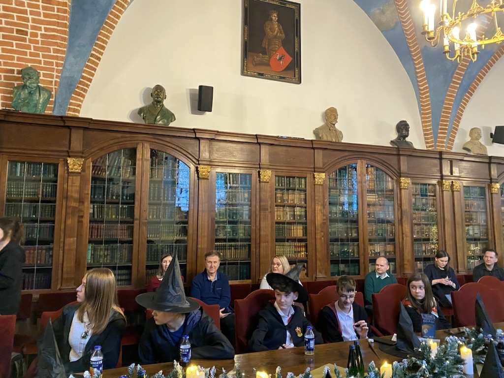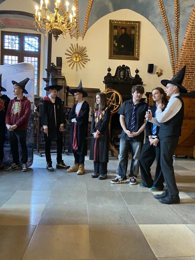 Dopiero przed godziną 11.00 dotarliśmy do budynku uniwersytetu i zobaczyliśmy, że czeka nas miła kulinarna przygoda… fontanna czekolady! Na to musieliśmy poczekać…Oficjalnie, w pięknej bibliotece, rozpoczął się finał konkursu. Pierwszy etap miał wyłonić 5 drużyn, które zakwalifikują się do ścisłego finału. Udało nam się ten etap przejść i czekała na nas ostatnia runda. W niej źle odpowiedzieliśmy na jedno trudne pytanie. Ostatecznie zajęliśmy trzecie miejsce! Choć nie udało się powtórzyć zeszłorocznego sukcesu (1 miejsca), miło było rywalizować w tak pięknych murach Uniwersytetu Jagiellońskiego. Było to świetne przeżycie!
