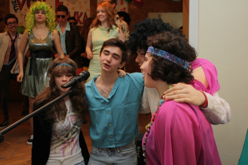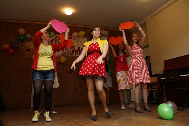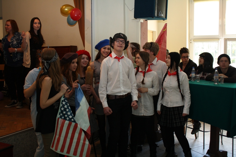 15 kwietnia odbyliśmy fascynującą podróż w przeszłość kultury. Za pomocą obcojęzycznych piosenek przenieśliśmy się do lat sześćdziesiątych i siedemdziesiątych (i nie tylko). Reprezentanci poszczególnych grup językowych aranżowali i brawurowo inscenizowali utwory z czasów, w których nikogo z nas (uczniów) nie było na świecie...