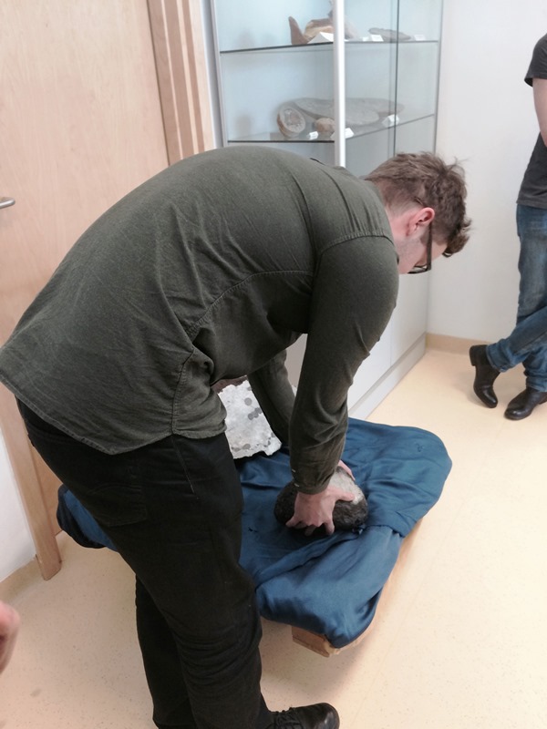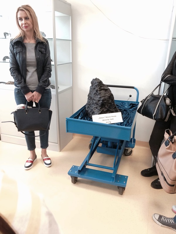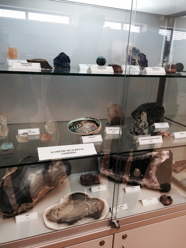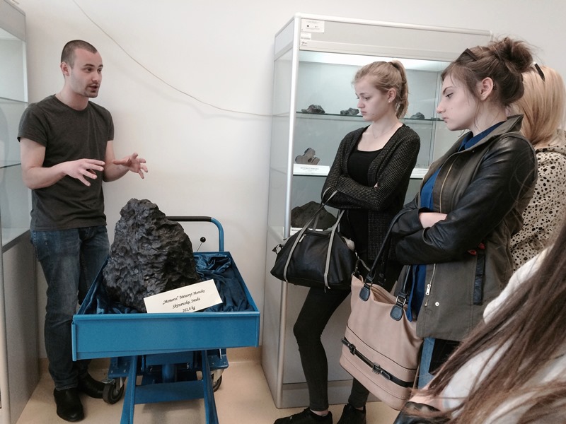 Wyzwaniem okazało sie zadanie z określaniem nazwy i właściwości skał i minerałów, lecz i z tym uczniowie dali sobie doskonale radę. Następnie podzieleni na grupy udali się do lapidarium, zobaczyć zgromadzone skały, niektóre o ogromnej masie, ciekawej budowie i strukturze - oraz do muzeum ziemi na krótką prezentację. Dodatkową atrakcją była możliwość podniesienia fragmentu meteorytu, znalezionego na Morasku, który, jak sie okazało, wcale lekki nie jest. Zajęcia te przybliżyły uczniom życie studenckie na Wydziale Geografii i Geologii.