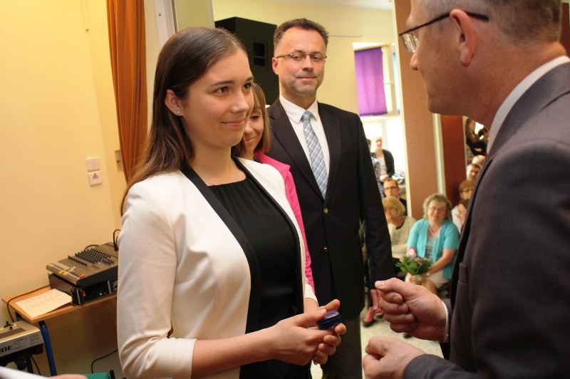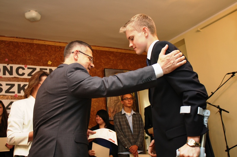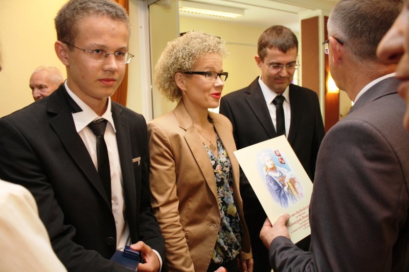 Największy zaszczyt szkole przynieśli absolwenci Gimnazjum, laureaci wojewódzkich konkursów przedmiotowych, którym wręczono Honorową Odznakę Dąbrówczańską: