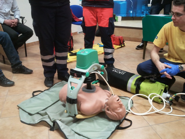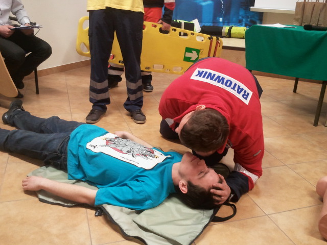 Po zakończonych zmaganiach grupa ratowników zaprezentowała najnowsze urządzenia ułatwiające wykonywanie pierwszej pomocy przedmedycznej. [KI]