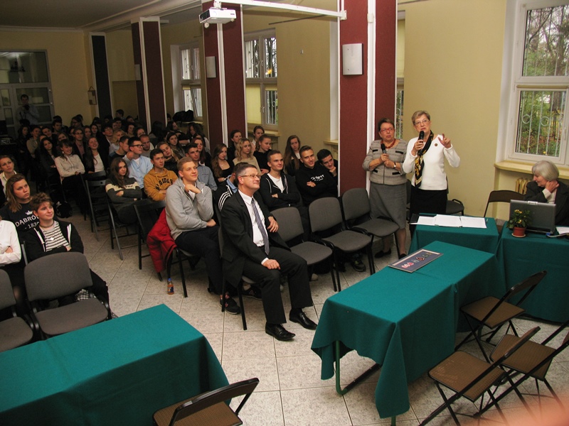 Z okazji Dnia Patrona panie ze Stowarzyszenia Przyjaciół Szkoły zabrały nas w fascynującą podróż w przeszłość. Dzięki barwnej opowieści pań Wacławy Małeckiej [Wawrzyniak] matura 65 i Grażyny Mormol [Sobierajskiej] matura 64 cofnęliśmy się do lat sześćdziesiątych, stając twarzą w twarz z naszymi rówieśniczkami [wtedy Dąbrówka była jeszcze szkołą żeńską].