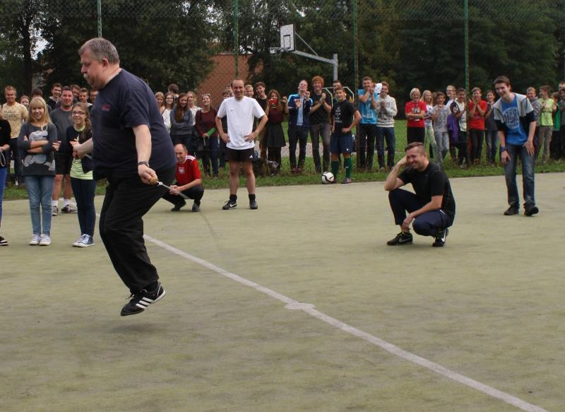 P.S Absolutną sensacją był gościnny występ pana Marka Hałki w turnieju skoków na skakance w przerwie meczu. Całe szczęści pan Marek wystąpił poza konkursem, bo swoją sprawnością w operowaniu rzeczonym rekwizytem wprawił wszystkich w osłupienie. Z tego też pewnie powodu nie został powołany do drużyny nauczycieli... [RN]