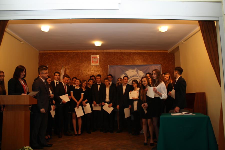 Uczniowie klas trzecich z dumą przyjęli dzisiaj miano absolwentów. Największy zaszczyt przynieśli szkole ci, którzy dzisiaj odebrali Honorową Odznakę Dąbrówczańską. Są to w kolejności zasług: