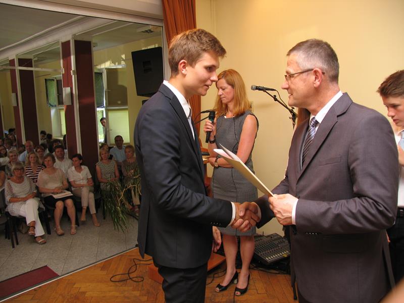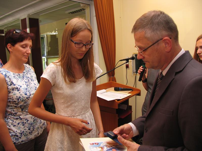 Ukoronowaniem długiego pochodu uczniów nagrodzonych na koniec roku szkolnego 2015/2016 były Honorowe Odznaki Dąbrówczańskie dla Absolwentów Gimnazjum: