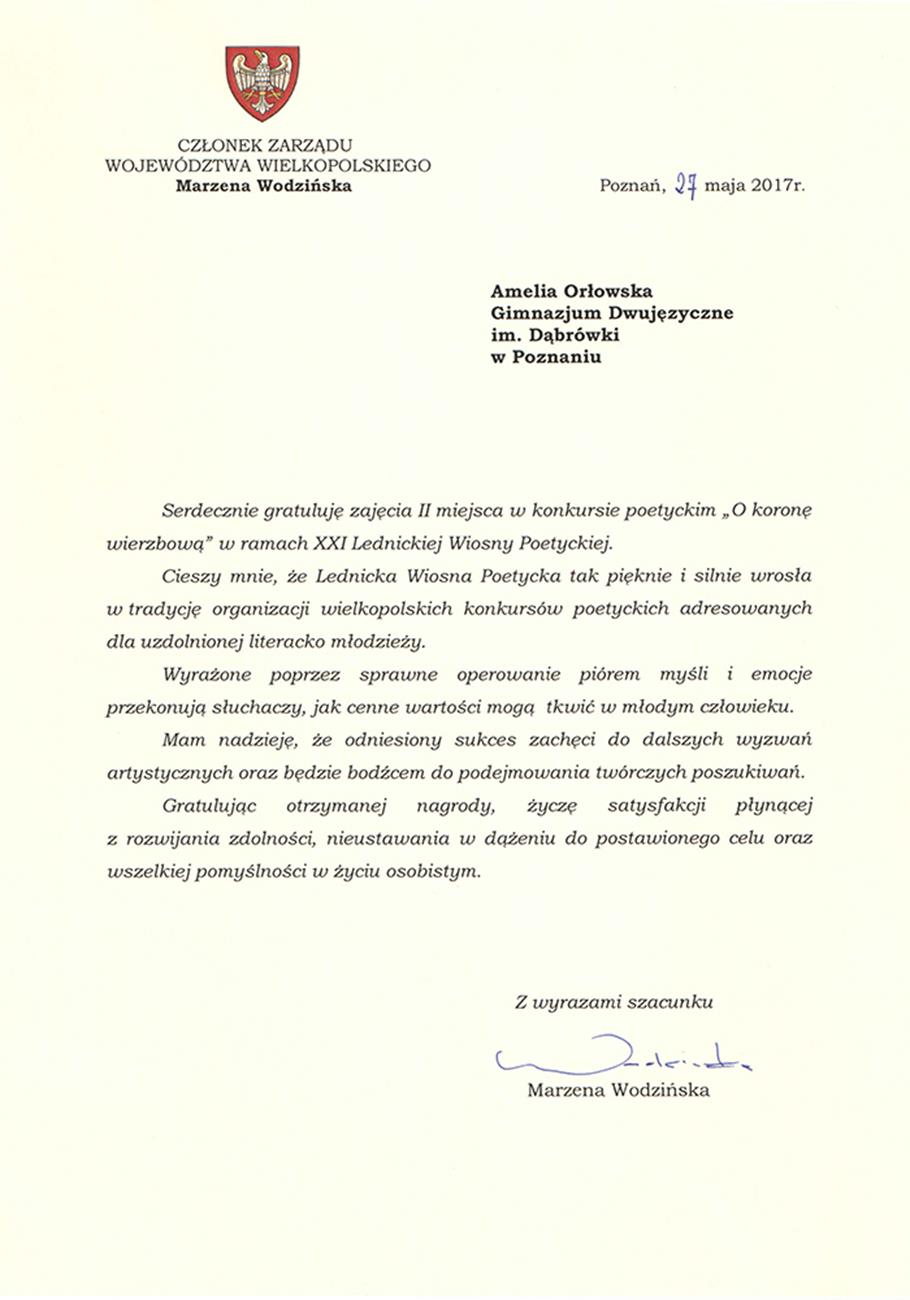 Miło nam poinformować, że Amelia Orłowska z klasy IGA zajęła II miejsce w głównym konkursie finału XXI Lednickiej Wiosny Poetyckiej. [Amelia Orłowska]