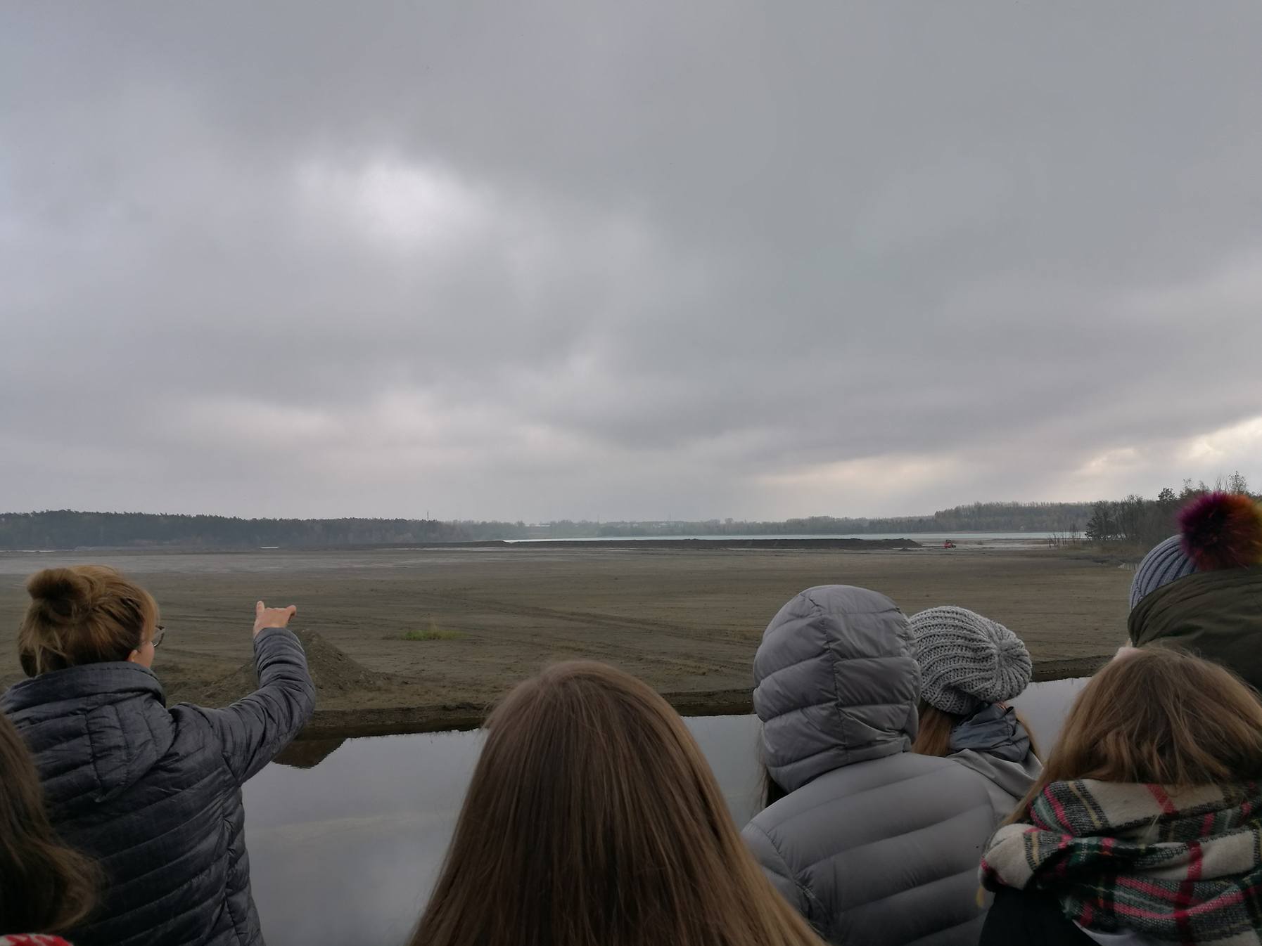 Jako pierwszy odwiedziliśmy punkt widokowy, na którym zostały nam przybliżone prace związane z wydobyciem węgla. Mogliśmy tam obejrzeć jedną z trzech odkrywek należących do kopalni. Dowiedzieliśmy się również, że istnieją trzy podstawowe rodzaje rekultywacji czyli zagospodarowania terenów powydobywczych. Coraz częściej tereny po byłych kopalniach odkrywkowych wykorzystuje się pod działania rekreacyjne.
