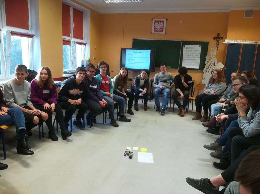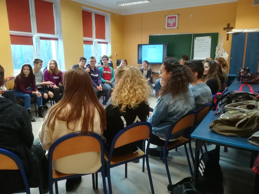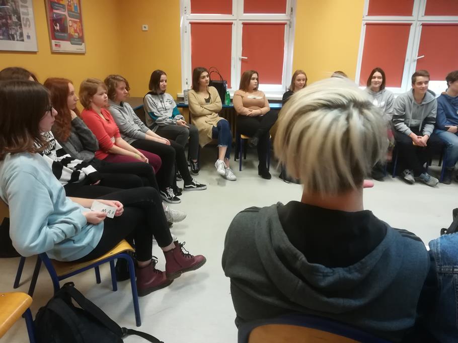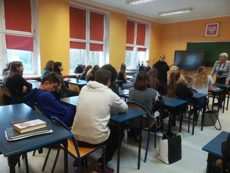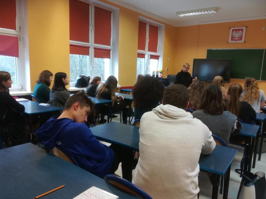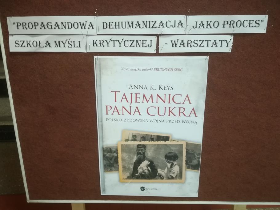 Warsztaty z p. Anną Karoliną Kłys w ramach Szkoły Myśli Krytycznej pt. „Propagandowa dehumanizacja jako proces” (mowa nienawiści, wiarygodność informacji), pisarką, autorką m. in. literackich reportaży „Tajemnica Pana Cukra” oraz „Brudne serca” (III A).