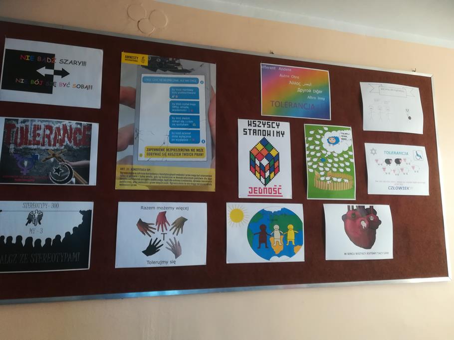 Wystawa plakatów nt. tolerancji (przygotowanych przez uczniów III GB) oraz wystawa tematyczna przygotowana przez uczniów kl. II e-hum.