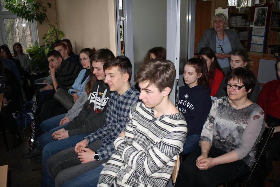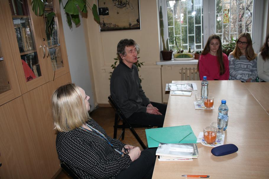 Autor 11 tomików wierszy, przepytany wnikliwie przez p. prof. Renatę Ayeb, podzielił się z uczennicami i uczniami kl. IA oraz osobami zainteresowanymi poezją i próbującymi swych sił w twórczości - mądrością i doświadczeniem, a przede wszystkim czytanymi przez siebie wierszami. Wyczarował przed słuchaczami obrazy dzieciństwa pełnego magii, opowiedział grozę grudniowych dni stanu wojennego i dojmującą tęsknotę syna rozdzielonego z matką.