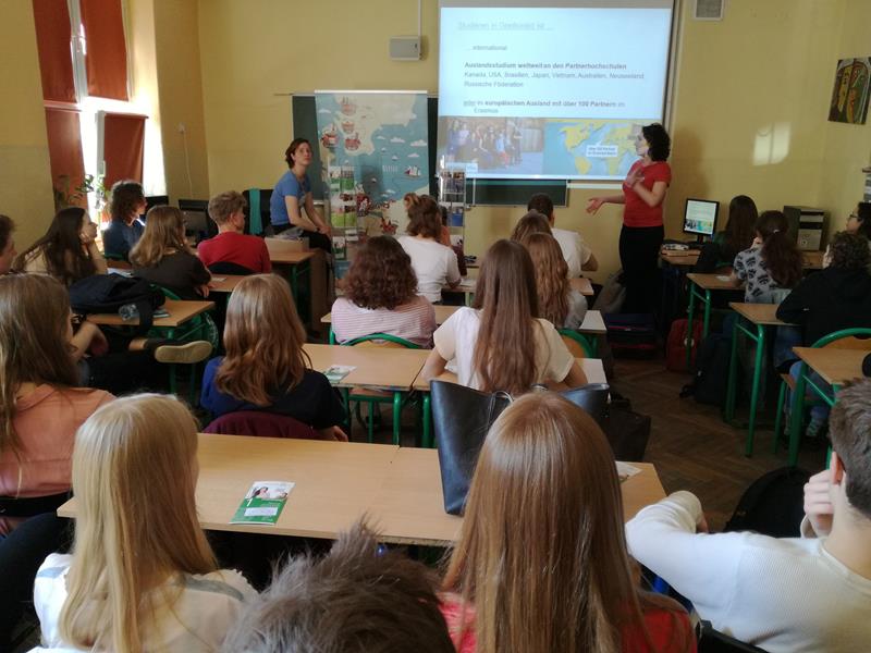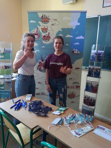 Opowiedziała ona o tym, jak ogromną rolę w jej życiu odgrywa język niemiecki. Jak krok po kroku rozwijała swoje umiejętności językowe na kolejnych etapach edukacji oraz razem z przedstawicielką Uniwersytetu w Greifswaldzie opowiedziały o możliwościach studiowania w Niemczech. Jowita przedstawiła ofertę edukacyjną Uniwersytetu w Greifswaldzie. Uczniowie mieli okazję obejrzeć krótki film, dzięki któremu poznali urokliwe miasto na północy Niemiec oraz jego wizytówkę, czyli Uniwersytet, który daje ogromne możliwości również studentom z Polski.