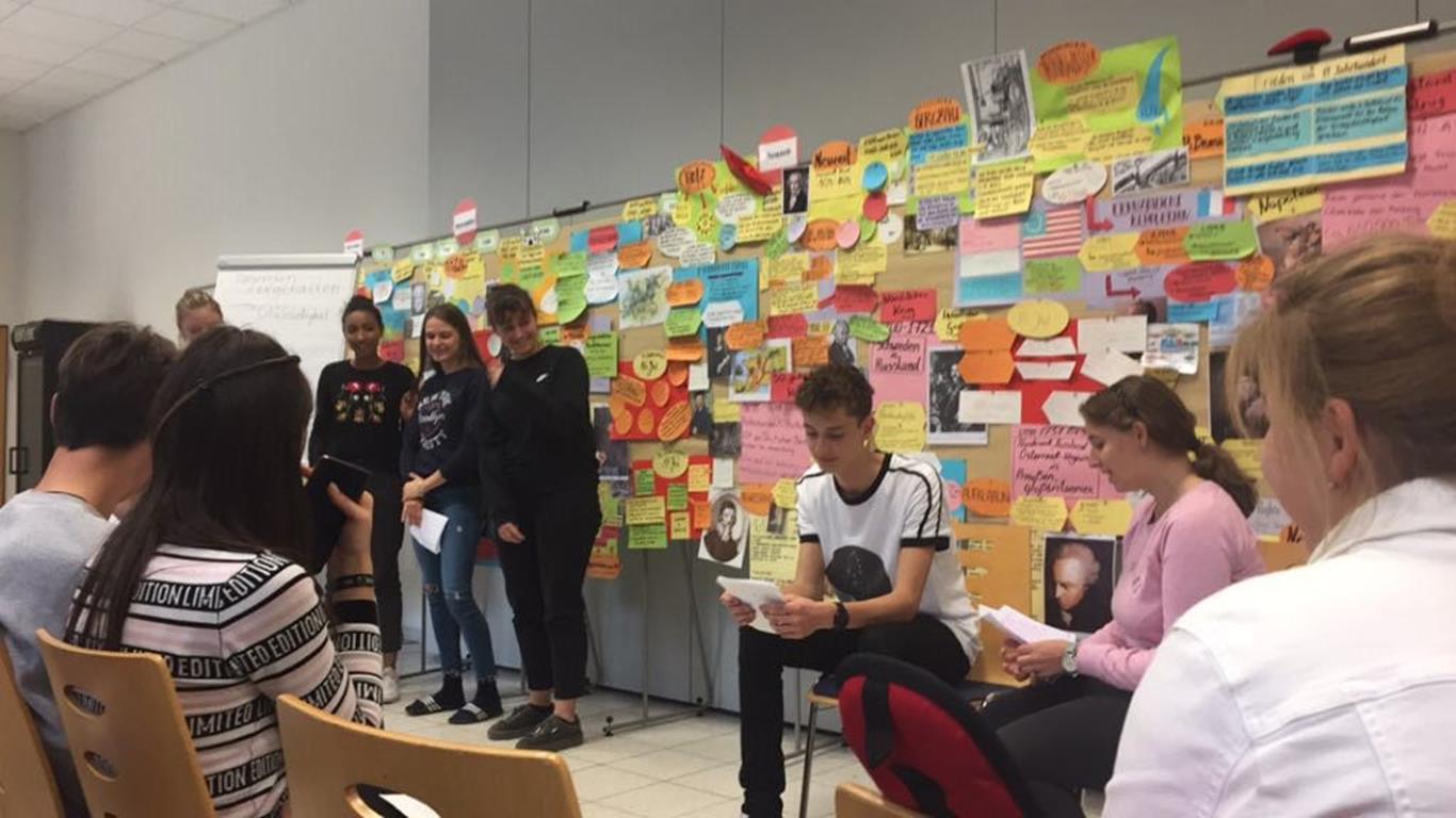 Następne dni minęły niespodziewanie szybko, byliśmy zajęci zgłębianiem wiedzy na temat historii Europy, praw człowieka, ekologii, ekonomii, demokracji czy wykształcenia. Codziennie w międzynarodowych zespołach przygotowywaliśmy skecze, piosenki, historyjki czy też referaty. Powstała oś czasu, na której umieściliśmy kluczowe wydarzenia w historii Europy od czasów starożytnych po współczesne.