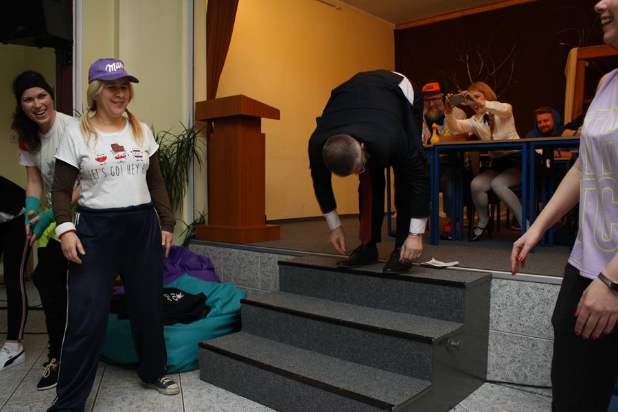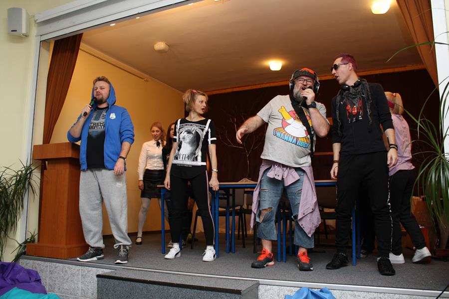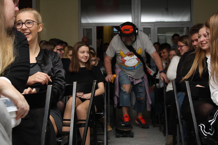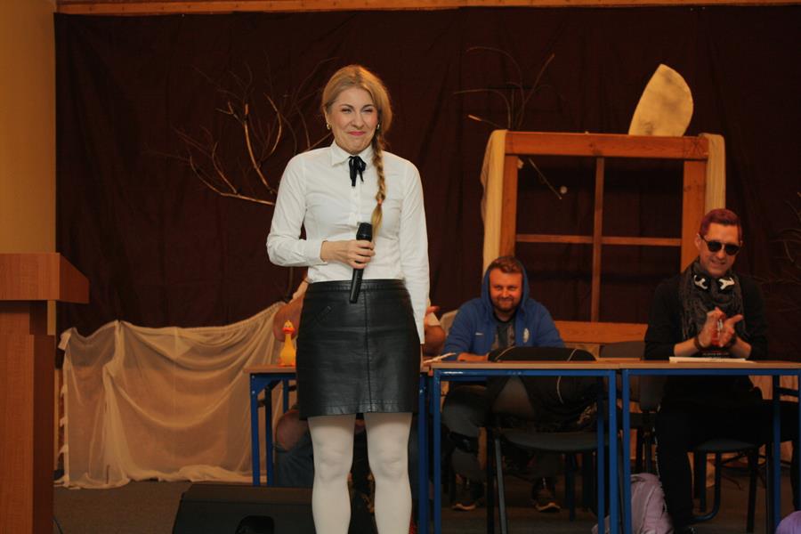 Było zabawnie i jednocześnie poważnie, bo mieliśmy tu kilka autoironicznych aluzji, sporo satyry i mnóstwo tak w szkole potrzebnego dystansu do samych siebie. Tu pozdrawiamy pana dyrektora Kozłowskiego, dziękując mu za to, że w kwestii tego dystansu bez wątpienia wiódł prym…