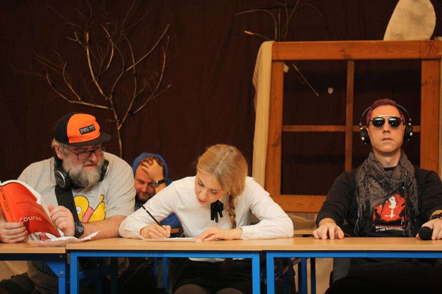 Pan Marek zagrał siebie – głosem. Pan Noj-nauczyciel strofował Roberta-ucznia. Pani Nowak-psycholog zaprosiła na terapeutyczną sesję uczennicę Justynkę. Pan Ratajczak [głos] brawurowo poprowadził lekcję wuefu dla uczennic: pań Dominy, Świgoń, Kluczykowskiej i pana Chwalińskiego. Pani Wójcik wysłuchała recytacji w wykonaniu uczennicy-Ani. Pan Proniewski uczył uczniów [też Janusza] zakładania konta na „facebooku”. Pani Ayeb interpretowała wiersz, w czym najskuteczniej pomagała jej uczennica Renata. Ksiądz Michalak miał problem ze zbuntowanym uczniem Piotrem. A na ostatniej lekcji muzyki pan Nowak poprowadził brawurowe wykonanie kolędy. Bo to przecież jasełka… Nie do końca zrozumieliście? Trzeba było być i się cieszyć, i rozumieć…
