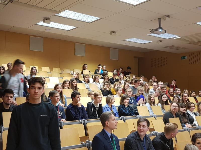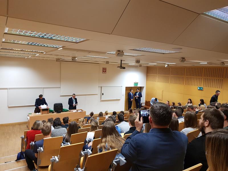 Zajęcia rozpoczęły się o godzinie sesją plenarną, gdzie zostaliśmy powitani przez profesorów, którzy opowiedzieli nam o wydziale. Kilka słów zabrali również przedstawiciele Samorządu Uczniowskiego Uniwersytetu, przedstawiając swoje zadania. Następnie przeszliśmy z Biocentrum do Collegium Maximum, gdzie wzięliśmy udział w wykładzie „Future of Work”. W tym samym czasie odbywał się quiz ekonomiczny, w którym zostało uczestniczyło pięć osób – najlepsi otrzymali nagrody rzeczowe.