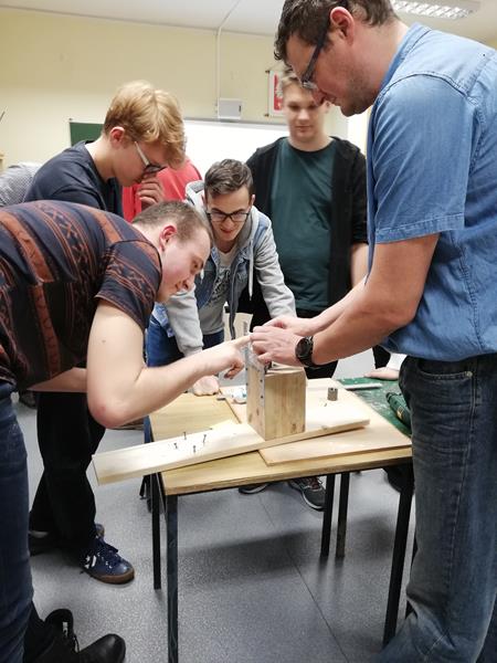 Modelem wahadłowca było surowe jajko, które na końcu musiało przetrwać próbę ognia z palnika gazowego. Test trwał 5 minut. Wszyscy uczestnicy zostali podzieleni na cztery grupy, w każdej opiekunem był jeden z rodziców. Po krótkim wprowadzeniu do tematyki przez panią Hewelt wszystkie grupy zabrały się do pracy.