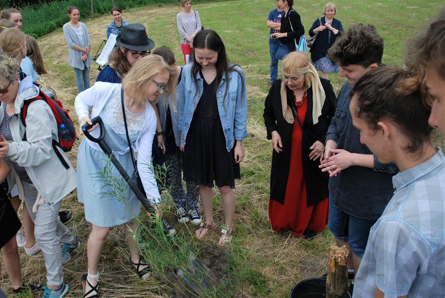 Dobrze, że posiłek dostarczył nam energii, ponieważ po godzinie 15.00 mieliśmy możliwość wzięcia udziału w sadzeniu młodej wierzby w ,,Gaju Poezji”, które uroczyście rozpoczęli uczniowie Szkoły Podstawowej Tysiąclecia w Lednogórze. Przygotowali oni także kapsułę czasu, do której każdy mógł dodać własny wpis dla przyszłych pokoleń.