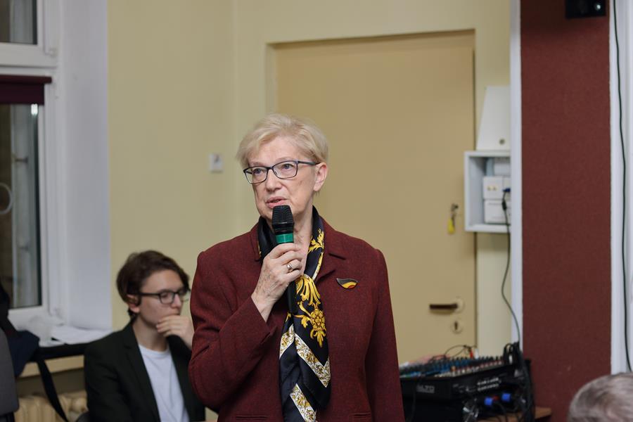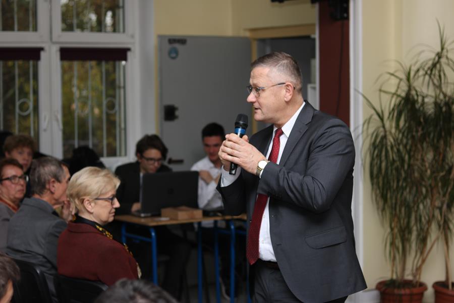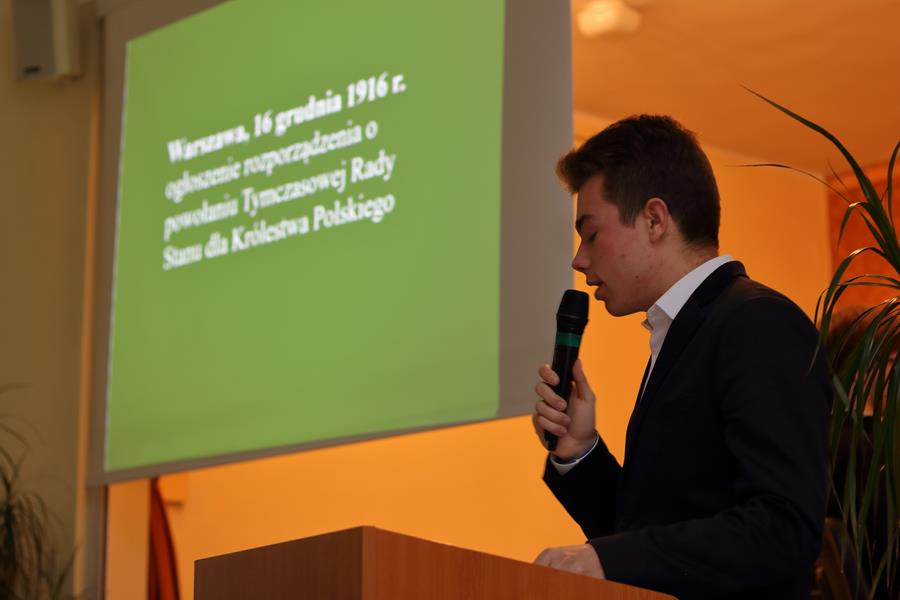 W auli szkoły z zainteresowaniem słuchaliśmy wykładów poznańskich historyków z UAM, panów Marcina Ignaczaka i Andrzeja Sikorskiego, o pracach archeologicznych prowadzonych na Placu Kolegiackim. Przedstawicielki absolwentów, panie Grażyna Sobierajska-Mormol i Wacława Małecka opowiadały o burzliwej przeszłości Dąbrówki, która wielokrotnie zmieniała swoją siedzibę. Karol Maćkowiak [klasa 3E] z kolegami z Klubu Brydżowego w nowatorski sposób zinterpretował proces odzyskiwania przez Polskę niepodległości, porównując zabiegi polityków do licytacji brydżowej.