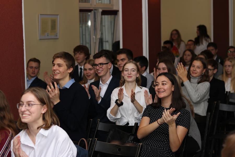 Klasy pierwsze, wyjątkowo w tym roku liczne, zmierzyły się w konkursie wiedzy o historii szkoły – zwyciężyła reprezentacja klasy 1gE.